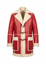 If you are a fan of movie-inspired outfits or looking for something unique for the holiday season, this red shearling-trimmed leather coat is the ultimate choice. Inspired by J.K. Simmons’ role as a rugged and charismatic Santa Claus, the design brings together old-world Christmas vibes and modern-day luxury. The bright red leather exterior immediately stands out, while the plush white shearling lining gives it both comfort and authenticity.