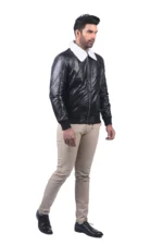 The Men’s Black Leather Bomber Jacket with White Shearling Collar is a classic wardrobe essential for men who want to combine warmth, style, and comfort. Crafted from genuine leather, it features a soft white shearling collar that enhances both look and functionality. Its bomber-style ribbed cuffs and hem add a modern streetwear vibe while keeping the cold out.