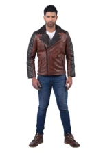 This dual-tone biker leather jacket is more than just outerwear—it’s a fashion statement. Whether you’re cruising on your motorcycle or heading to a night out, its unique brown and black combo ensures you always stand out in the crowd.