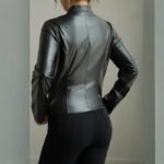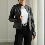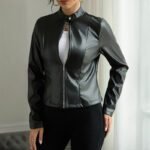 Women’s Solid Color Long Sleeve Stand Collar Faux Leather Blazer – Single Button Zippered Jacket For Fall&Winter